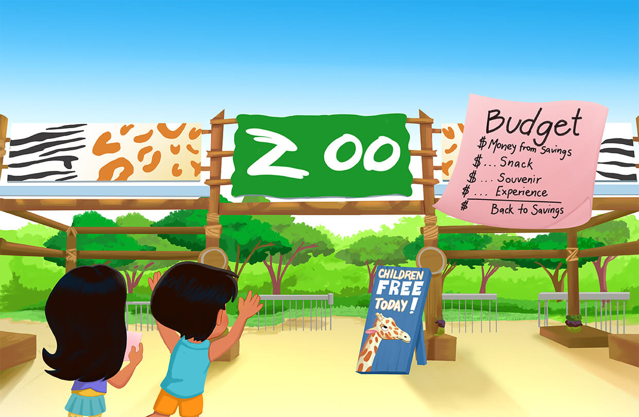 Best Day at the Zoo does just that. Written in a rhythmic style, this book is a whimsical story about brother and sister twins who have dreamed about and saved for their day at the zoo with friends. There are many lessons in the book that touch on the concepts of saving, budgeting, planning, and donating. Choices are made along the way. Giraffes with long black tongues that eat from Skye’s hand, lions that roar, and penguins that waddle spark every child’s imagination. A bell ringer’s kettle provides an opportunity for Skye and Rey to give to those who have less. The subtle financial literacy messaging is told through a story that children will relate to and will want read to them over and over again.