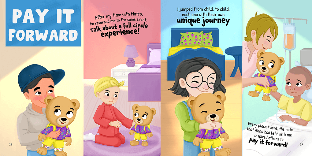 Eager for adventure, Paisley the teddy bear unexpectedly finds himself in a hospital, comforting Ahna, a young girl with cancer. But his mission doesn’t end there. From child to child, Paisley discovers the power of paying it forward—learning that even the smallest gestures can bring light during difficult times.